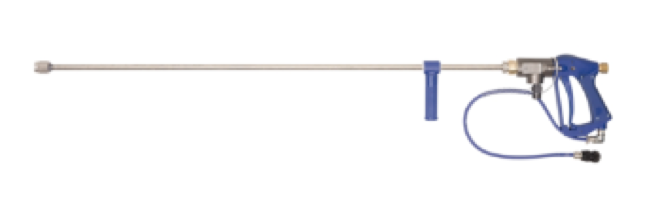 From 1200 bar, we also work with lances instead of spray guns. These lances do not have their own valve in the pistol, but are electrically operated. The available pressure variants are 1200 bar, 2000 bar and 2500 bar.