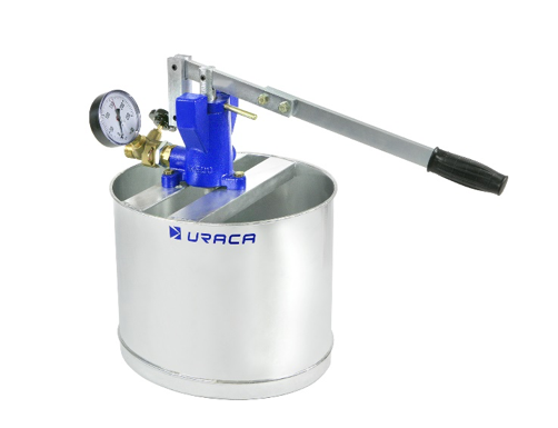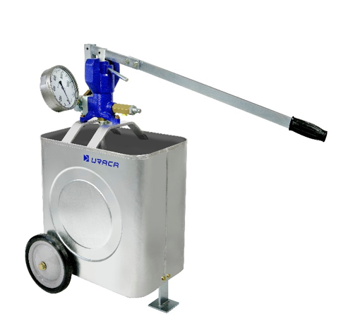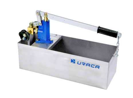De Uraca UX60 handperspomp is geschikt voor een maximale testdruk van 60 bar. De pomp wordt als complete unit geleverd inclusief reservoir, hogedrukslang en manometer.